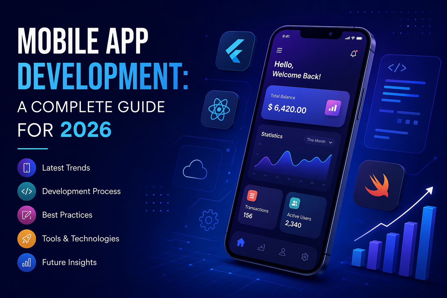 This guide provides a comprehensive overview of mobile app development, including key trends, technologies, process steps, and best practices for success.